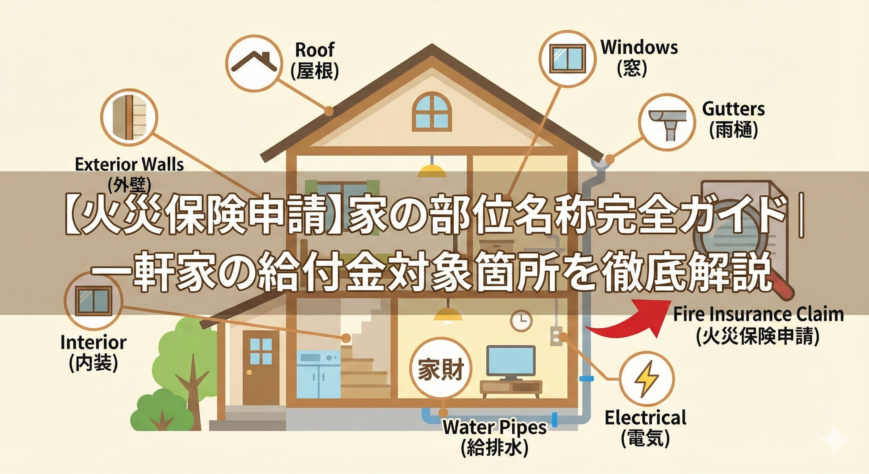 【一軒家向け】火災保険の申請で損をしないために必須となる「家の部位名称」を完全ガイド。棟板金・ケラバ・雨樋など、給付金の対象箇所や、審査をスムーズに通すための正しい申請方法をプロが解説します。